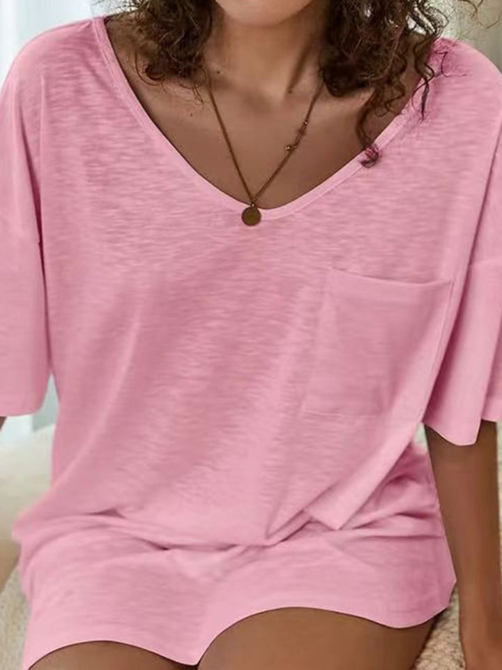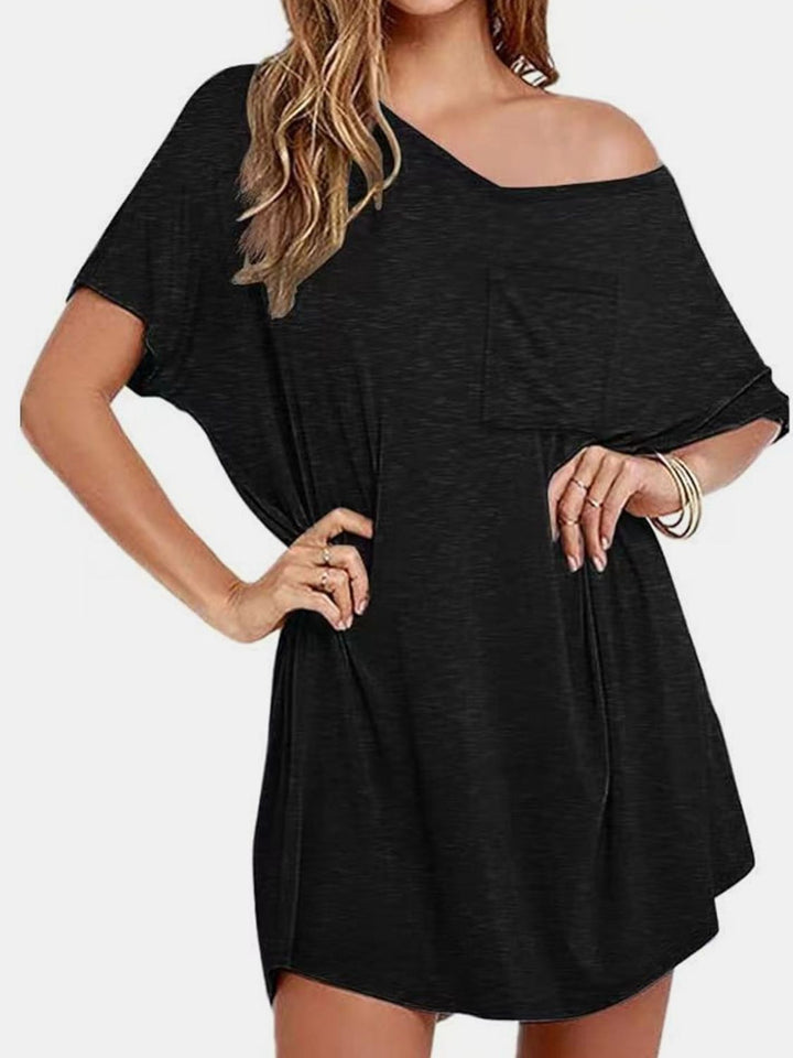 Pocketed V-Neck Short Sleeve Tee Dress